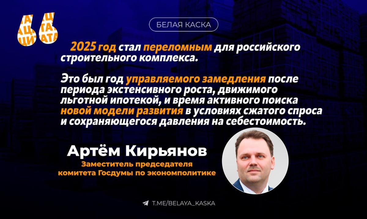 Зампред комитета Госдумы по экономической политике Артем Кирьянов – об итогах 2025 года для стройотрасли