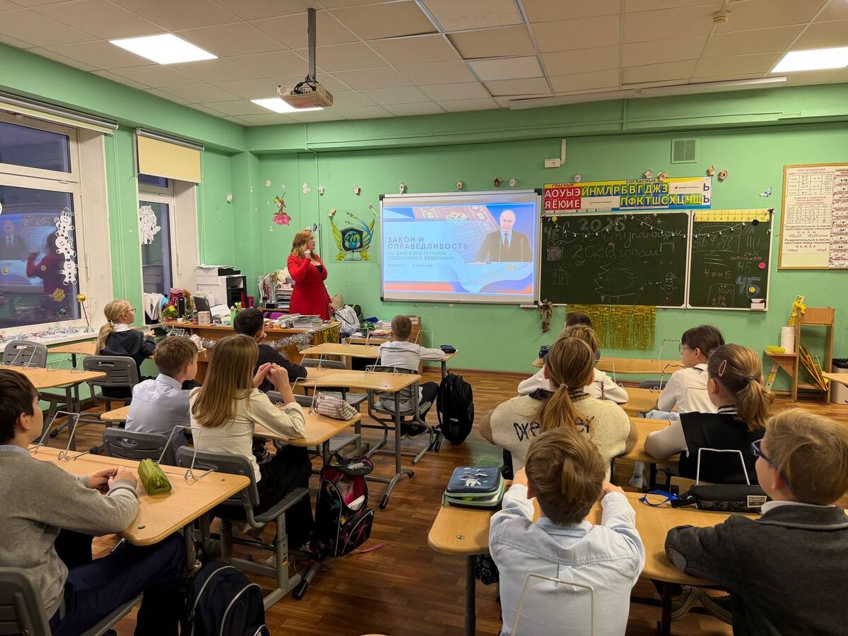 Разговоры о важном: «Закон и справедливость. Ко Дню Конституции» 🇷🇺 📘 Сегодня на занятии «Разговоры о важном» говорили о теме, которая касается каждого, — «Закон и справедливость. Ко Дню Конституции». О том, что помогает сохранять порядок, уважение и равновесие в обществе. ⚖️ Ребята вместе с педагогами обсудили права и обязанности гражданина, защиту на государственном уровне и роль людей, стоящих на страже закона и справедливости. 🎬 Права одного человека заканчиваются там, где начинаются права другого — именно на этом строится справедливое общество. ❓Почему Конституция России важна в повседневной жизни? Как законы помогают принимать решения и сохранять социальный баланс? Ответы на эти вопросы стали основой живого диалога. 👩🏫 Спикером встречи стала Элина Леонидовна Сидоренко — генеральный директор АНО «Белый Интернет», член Совета при Президенте по развитию гражданского общества и правам человека, профессор МГИМО. Она рассказала о честности перед собой, трёх опорах справедли