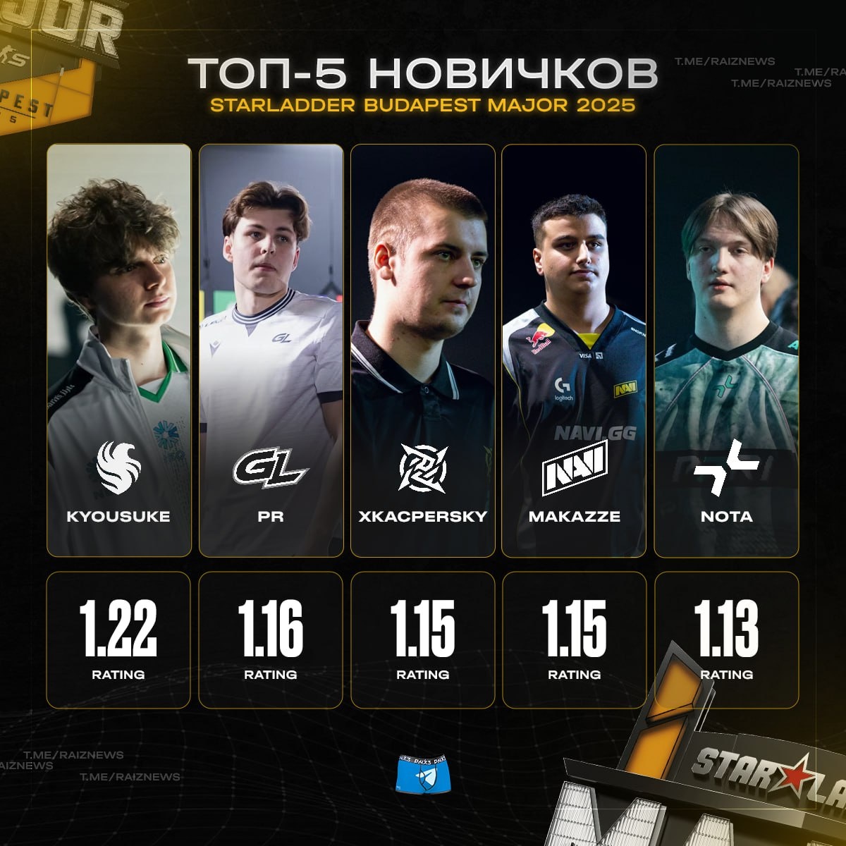 🙇♂️ Топ-5 новичков StarLadder Budapest Major 2025 по рейтингу
