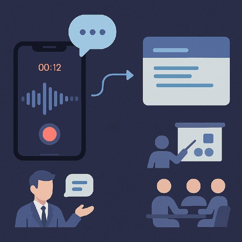 Умный диктофон с ИИ: когда разговор становится «операционным копилотом» Я давно хотел штуку, которая не просто пишет аудио, а помогает принимать решения прямо в момент разговора. Идея простая: приложение в реальном времени слушает, структурирует беседу и подкидывает подсказки по заранее заданным промтам. 📌 Что уже работает на тестовом стенде * Помощник продажника: ловит контекст диалога с клиентом и подсказывает, что еще спросить, что уточнить, где риск «не дожать» договоренности. * Помощник коуча (GROW): держит нить разговора, напоминает, что уже проговорили, и какие вопросы помогают прояснить цель/реальность/варианты. * Структурирование совещаний: классика - повестка, решения, владельцы, сроки, риски. * Помощник бизнес-тренера: объективный наблюдатель в парах-тройках - фиксирует качество обратной связи, сигналы перекосов и недосказанности. Сфера применений, если по-честному, огромная. Везде, где надо слушать и быстро решать: продажи, управление, обучение, переговоры, разбор инц