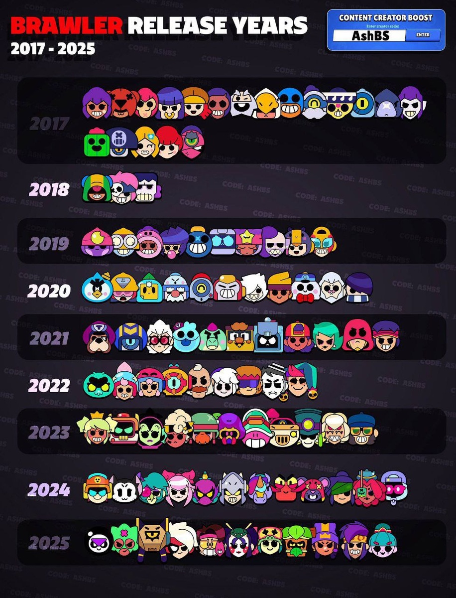 ⚡️ Все бойцы распределенные по году их выхода: ❓ Какой год для вас запомнился больше всего? ✅Новости по Clash Royale - ТЫК 😌Новости по Roblox - ТЫК Мир Supercell. Подписаться