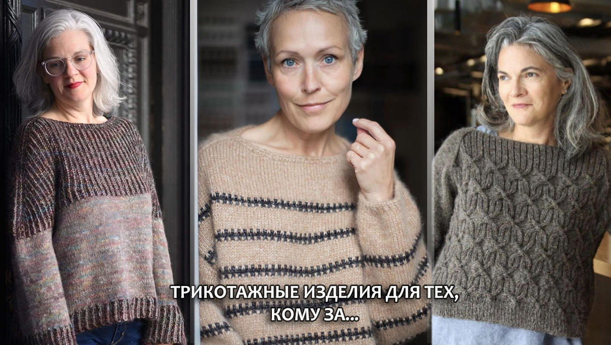 В комментариях к моим статьям часто встречаю мнение, что те трикотажные изделия, которые показываю, подходят только для молодых девушек. В этой статье хочу развенчать этом миф, доказав с помощью фото, насколько стильно могут смотреться вязаные джемперы, пуловеры и кардиганы на дамах прекрасного возраста.