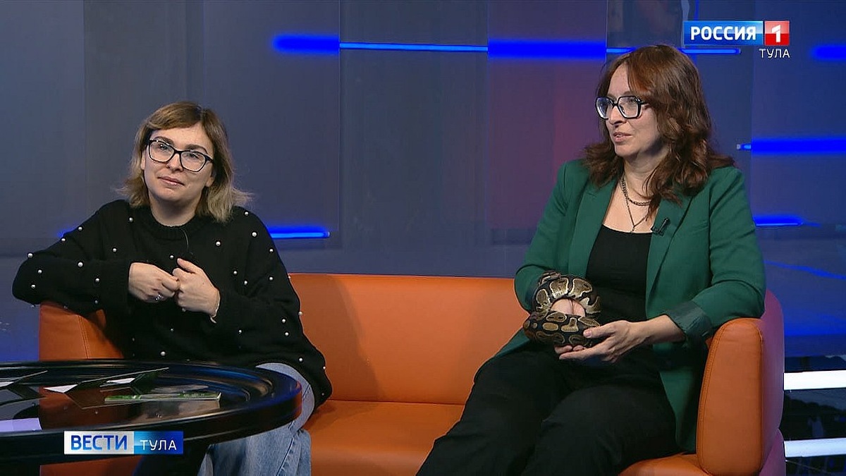 Новогодние приключения в окружении животных ждут туляков. Праздничную интерактивную программу под названием «Чары Снежной королевы» подготовили в Тульском экзотариуме. Ребятам предлагают оказаться в сказке. Что это будет, узнаем у гостей. С нами заведующая отделом развития Елена Курлыкова и методист Тульского экзотариума Дарья Майорова. Мы так понимаем, что вы пришли со змеёй как с символом уходящего года? Змеи — это основная специализация экзотариума, рептилии. И, конечно, змея будет участником наших интерактивных мероприятий: и в качестве активного героя, и в качестве, так сказать, разработчика нашего экзотариумного сувенира. Давайте расскажем, что за змея, сколько лет, чем она интересна. Чем питается? Питается, понятное дело, грызунами. Ему сейчас около 5 лет, зовут Николай. Мы, кстати, очень часто его куда-нибудь с собой вывозим. Вот даже когда у нас на днях была премия в Нижнем Новгороде, он ездил с нами, и часть нашей награды фактически им заработана. Увидеть его можно на новой э