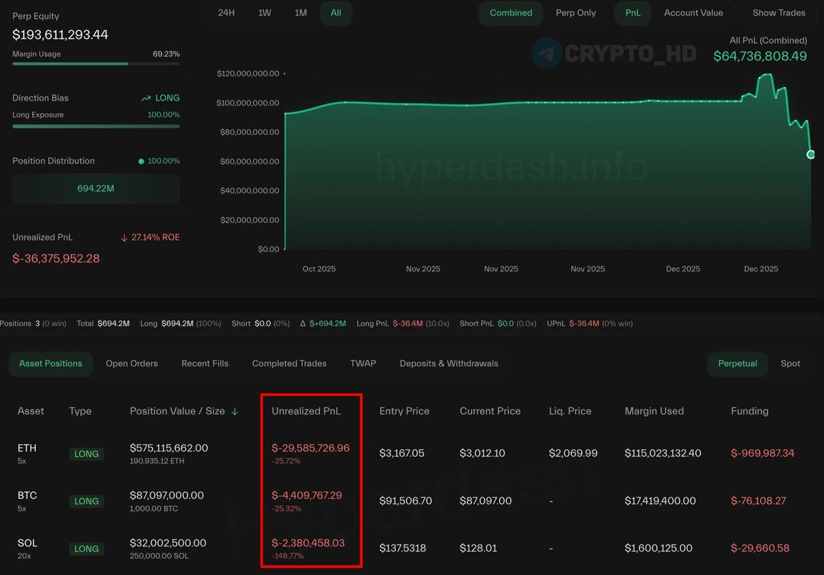 🙁 Инсайдер Bitcoin OG сейчас в минусе почти на -$40,000,000 по своим текущим сделкам