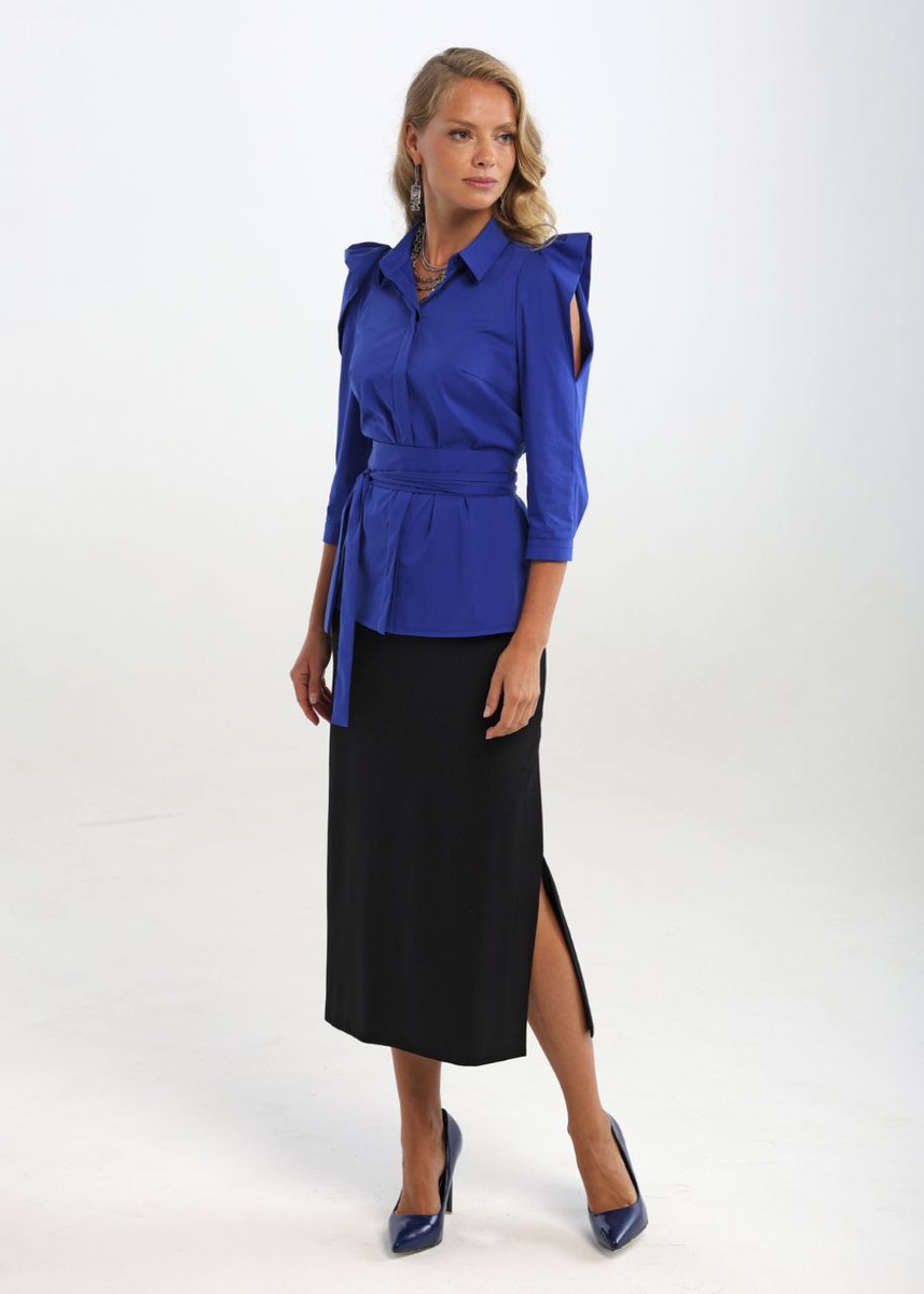 Яркая и эффектная дизайнерская блуза синего цвета с оригинальным кроем. Создана специально для вас. Размеры: 42-54.