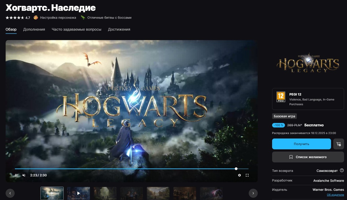 🎮 В Epic Games Store можно бесплатно забрать Hogwarts Legacy!
