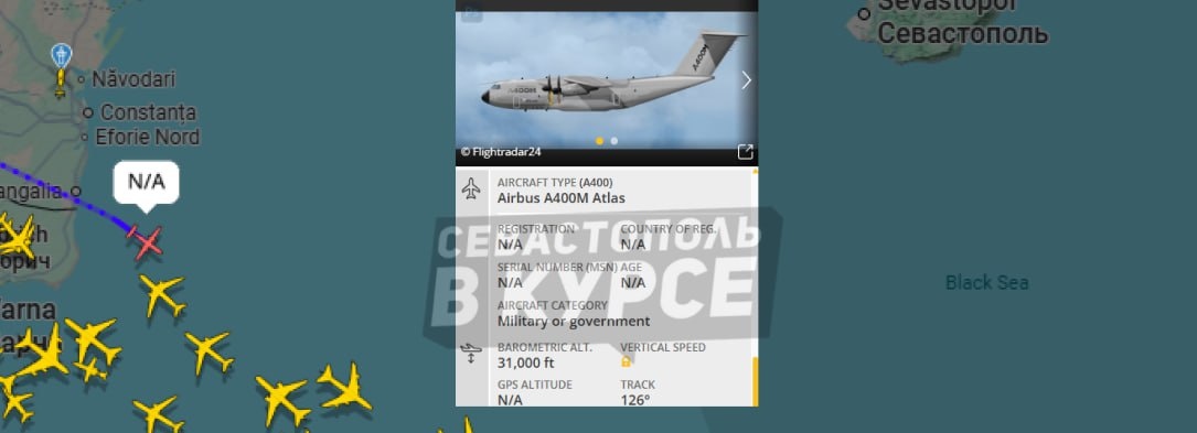 В ответ на пост ⚠️Очередной НАТОвский самолёт приступил к разведке крымского побережья В этот раз над акваторией Чёрного моря замечен европейский военно-транспортный Airbus A400M Atlas. 💿Мы в MAX — подпишись! 🔴Подписаться на Севастополь в курсе