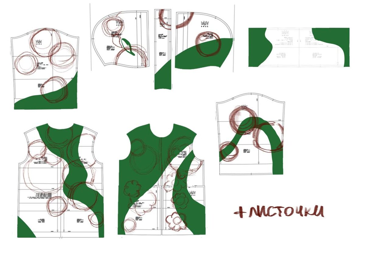 следующий шаг: сделаю копии лекал на крафтовой бумаге и буду рисовать прямо на них, чтобы затем вырезать все необходимые детали.