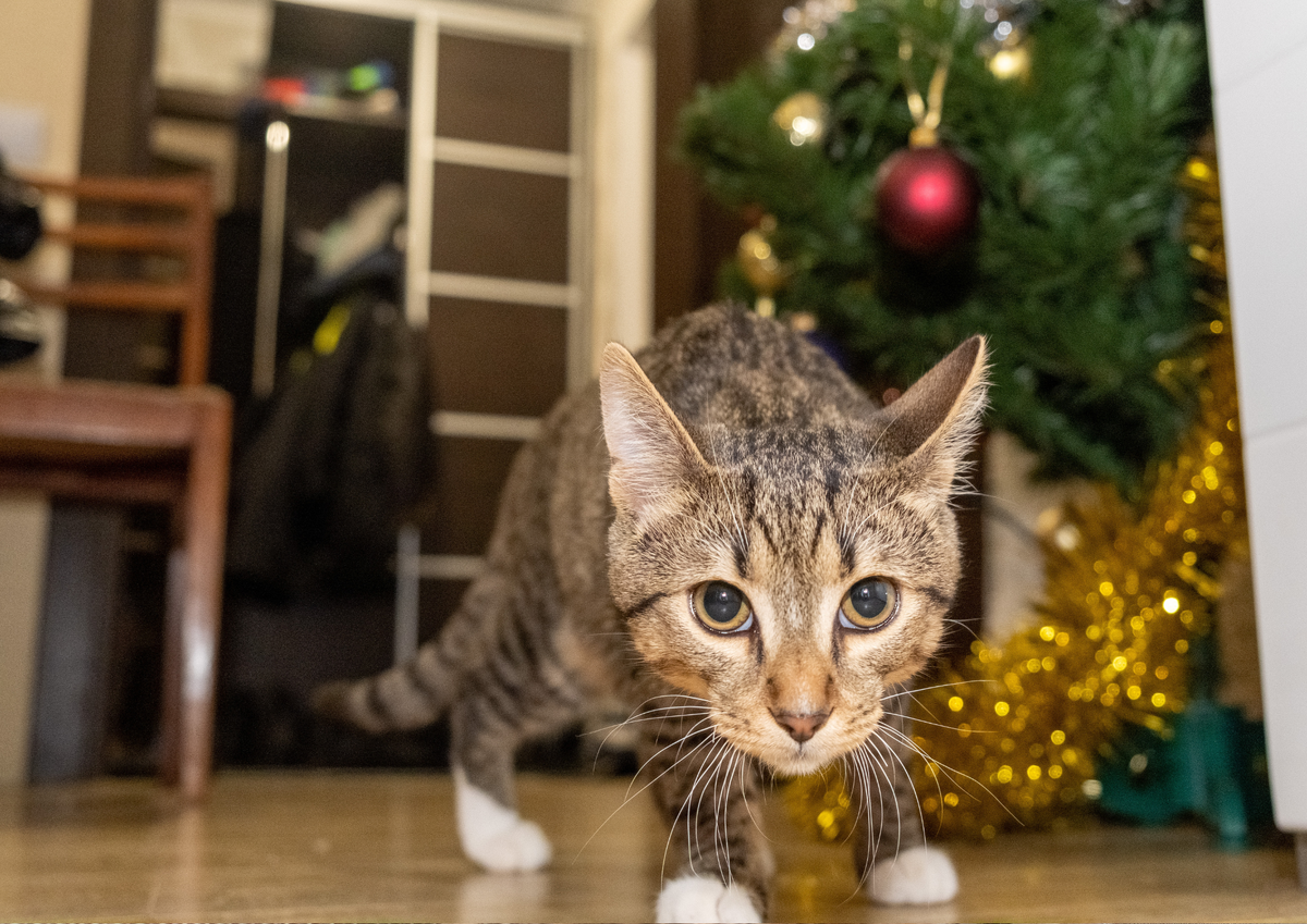 В жизни каждого питомца бывает первый Новый год, когда для него всё в новинку, в том числе украшенная ёлка. После того, как нарядили ёлку, скорее всего, котик к ней подойдёт и начнёт исследовать, что это за чудо-чудное диво-дивное. По первой встрече с ёлкой никогда нельзя делать однозначные выводы о том, насколько силён интерес. Помним, что через некоторое время питомец останется в квартире с ёлкой наедине. Но мы бы не сбрасывали со счетов значение первой встречи. Всё-таки она помогает составить определенное впечатление, «насколько буйный твой кот» (цитата нашего знакомого, который так проверяет своих хвостатых).