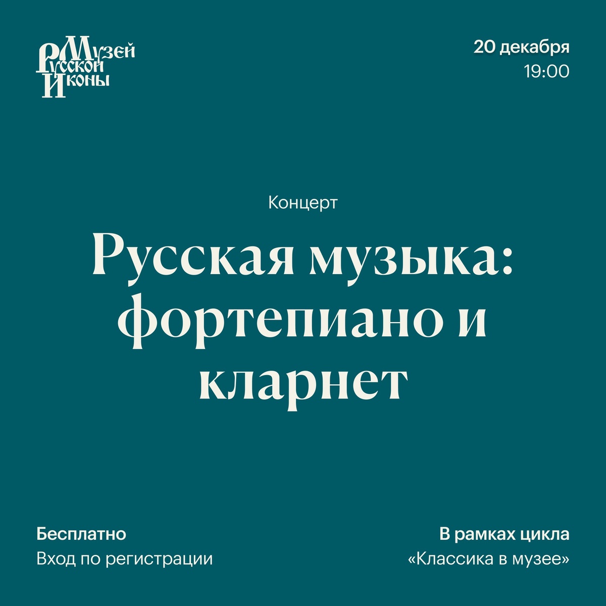 Концерт | 20 декабря, 19:00 Слушателям будет представлена программа, состоящая из фортепианных пьес С.В. Рахманинова и П.И. Чайковского, а также их музыка в обработке для кларнета и фортепиано. Исполнители: Батырхан Сулеймен (фортепиано), Ангелина Кузнецова (фортепиано), Антон Власов (кларнет), Александр Власов (кларнет). Ведущая концерта — София Власова. 👉 Мероприятие проводится бесплатно, число мест ограничено. Записаться.