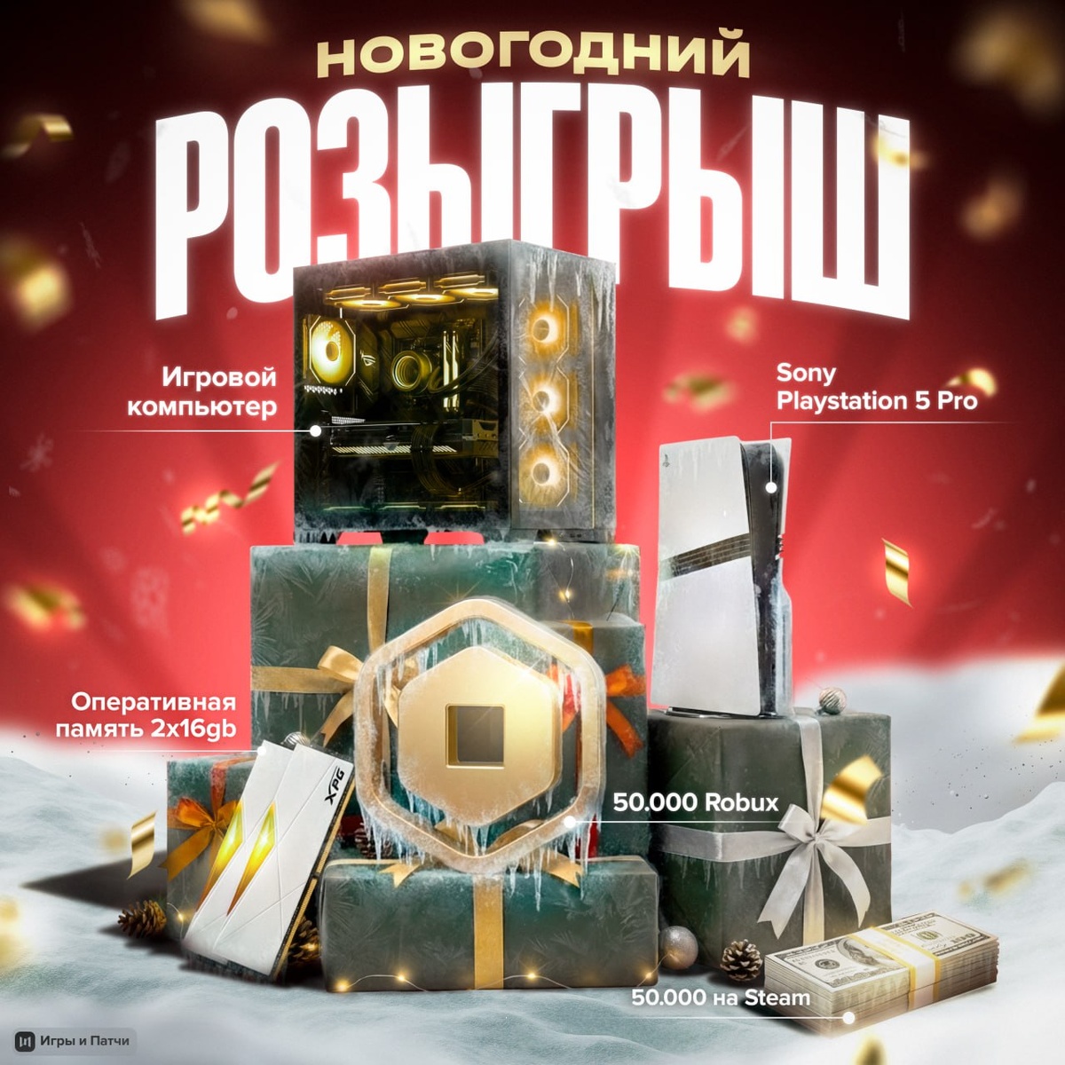 🎆 НОВОГОДНИЙ РОЗЫГРЫШ ОТ ИГРЫ И ПАТЧИ — подготовили для вас крутые подарки на праздник: ➖ 1 игровой ПК ➖ 1 Playstation 5 Pro ➖ 5 комплектов оперативной памяти 2x16gb ➖ 5 человек по 10.000 робуксов на аккаунт ➖ 5 человек по 10.000 рублей на аккаунт Steam Для участия: ➡️ Подпишись на Игры и Патчи ➡️ Нажми кнопку «Новый год» под постом 👇 Итоги розыгрыша подведем 31.12.2025 в 21:00. Все призы будут отправлены после новогодних праздников CtrlAltDelights Новый год