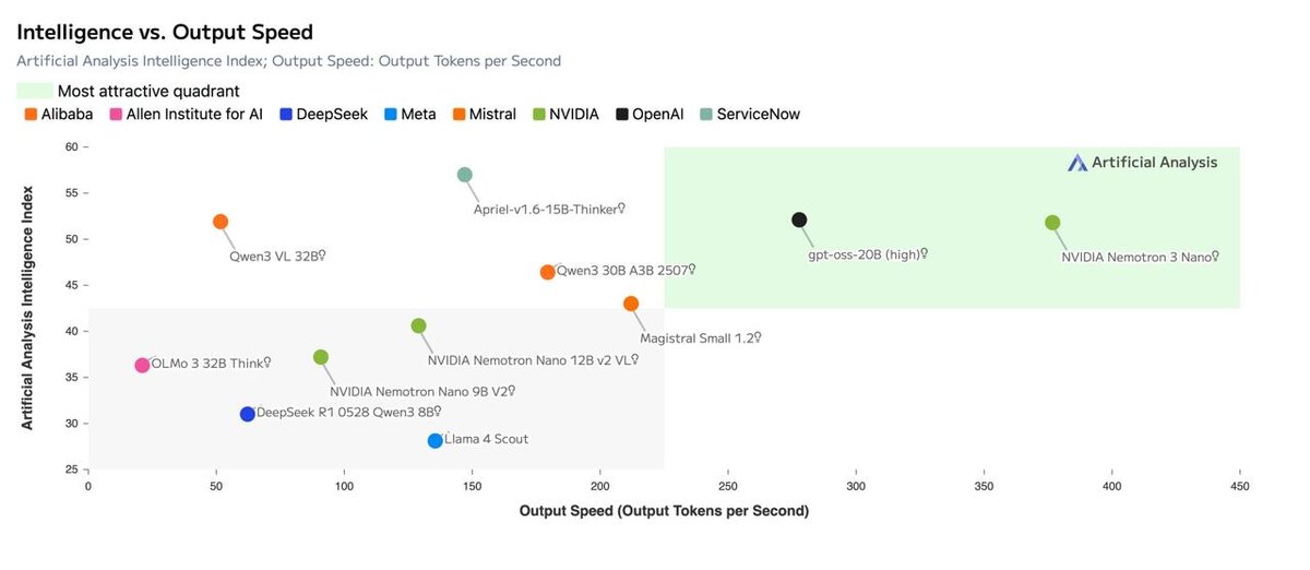 NVIDIA представила новое открытое семейство моделей Nemotron 3 Nemotron 3 Nano - это универсальная модель для рассуждений и чата, ориентированная на локальный запуск. Ключевые характеристики: - MoE-архитектура: 30B параметров всего, ~3.5B активных - Контекст до 1 миллиона токенов - Гибридная архитектура: - 23 слоя Mamba-2 + MoE - 6 attention-слоёв - Баланс между скоростью и качеством рассуждений Требования: - необходимо около 24 ГБ видеопамяти для локального запуска Модель хорошо подходит для длинных диалогов, анализа документов и reasoning-задач Интересный пример того, как MoE и Mamba начинают реально снижать требования к железу, сохраняя масштаб контекста и качество. Nemotron 3 Super и Nemotron 3 Ultra значительно превосходят Nano по масштабу - примерно в 4 раза и 16 раз соответственно. Но ключевой момент здесь не просто в размере моделей, а в том, как NVIDIA удалось увеличить мощность без пропорционального роста стоимости инференса. Для обучения Super и Ultra используется NVF