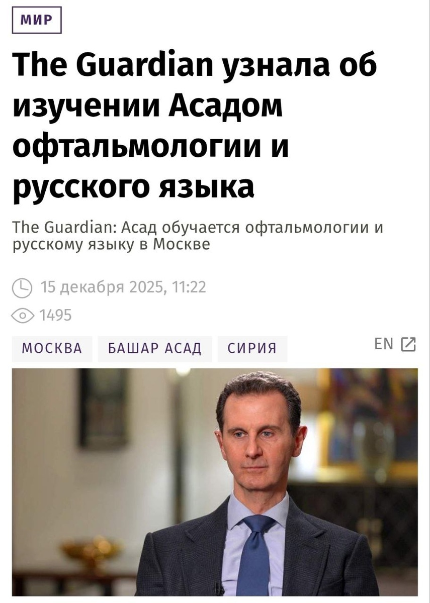 Зато Башар Асад теперь ценный специалист и как медик отработает 3 года по распределению