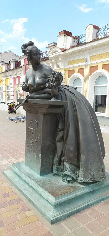 Мы увидели памятник на пешеходной улице — женщину в платье XIX века, с гордым профилем, с лёгкой улыбкой.