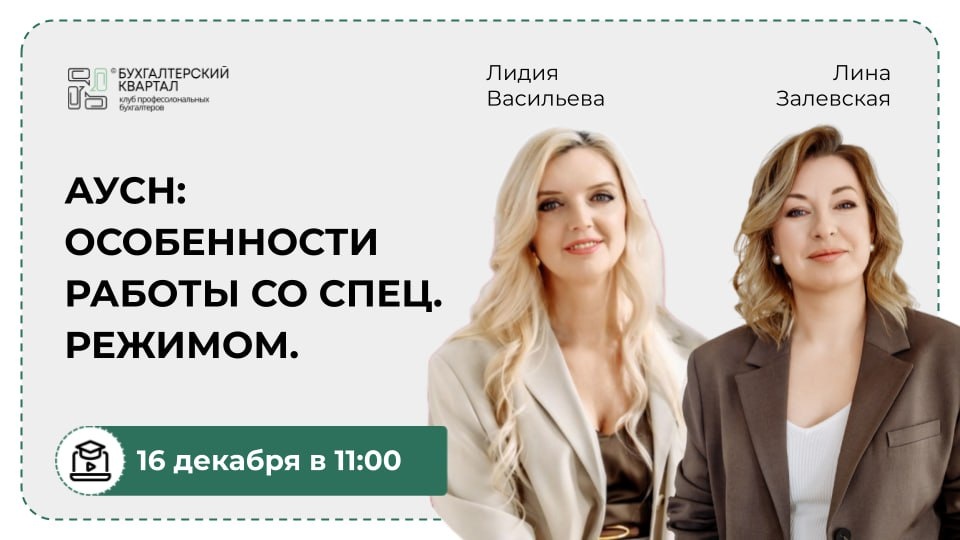 Эфир про АУСН для предпринимателей Коллеги, для бухгалтеров мы тему АУСН уже разобрали, пора рассказать и предпринимателям. Понятным им языком. Берём просветительскую роль на себя и завтра проводим эфир про АУСН специально для бизнеса. 📅 Завтра, 16 декабря в 11:00 мск Приходите сами и приглашайте своих клиентов / знакомых предпринимателей, если они хотят разобраться в АУСН и не наломать дров. Ссылка для регистрации ⤵️ https://zalevskaialina.ru/mk_ausn P.S. Если вы были на нашем большом вебинаре, можно не приходить, этот эфир будет короче и адаптирован именно под предпринимателей.