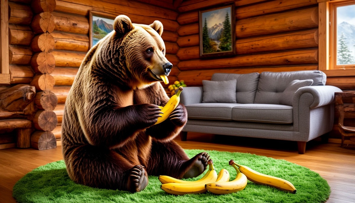 Медведь повёл носом, учуяв бананы, и решил, что рыбу он больше не хочет. Бело-зелёный ворсистый ковёр к этому моменту уже успел превратиться в грязную, не подлежащую спасению подстилку. Стеклянный журнальный столик котяра предусмотрительно задвинул в угол ― не жалко, если разобьётся, но гость ведь пораниться может.
