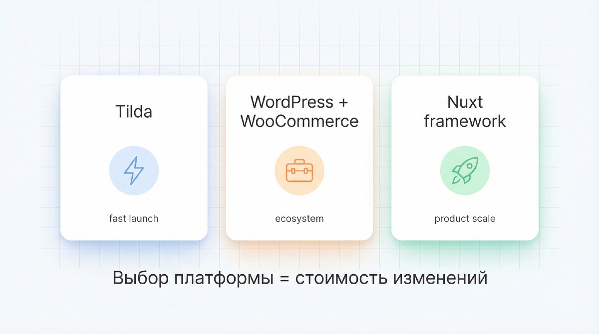 Если хотите — напишите, какая у вас ниша, сколько SKU сейчас и какие “усложнения” точно появятся в ближайший год. Я предложу наиболее здравый вариант (Tilda / WooCommerce / фреймворк Nuxt) и объясню, где вы упрётесь в потолок раньше всего — без маркетинговых обещаний.