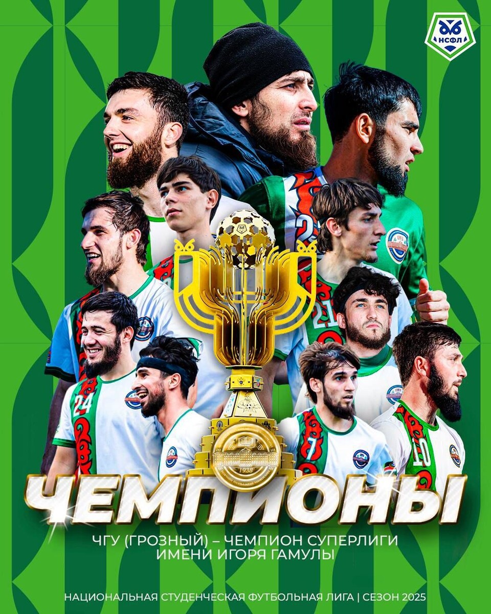 У нас по-настоящему выдающиеся новости, которыми хочется поделиться с особой гордостью. Чеченский государственный университет имени А.А. Кадырова впервые за всю историю стал чемпионом Национальной студенческой футбольной лиги. Это победа, которая навсегда войдёт в спортивную летопись республики. Наша команда и университет в очередной раз доказывают, что достойны нести имя и знамя Первого Президента ЧР, Героя России Ахмат-Хаджи Кадырова (Дала гIазот къобалдойла цуьнан). В Суперлиге имени Игоря Гамулы наша команда продемонстрировала исключительную стабильность и мастерство: 15 матчей, 13 побед, 1 ничья и всего 1 поражение. Набрано 40 очков. Пропущено лишь 5 мячей. Это не просто статистика — это золотой стандарт, который будет вдохновлять новые поколения студентов и спортсменов. Этот успех стал возможен благодаря постоянной поддержке и вниманию Главы Чеченской Республики, Героя России Рамзана Ахматовича Кадырова, чьи усилия и внимание к развитию спорта создали прочную основу для наших д