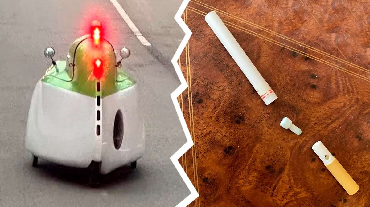 9. Вопрос: «Белое пластиковое устройство высотой около 60 см, напоминающее аэрогриль, с двумя металлическими шарами и мигающими огнями. Двигалось по дороге»