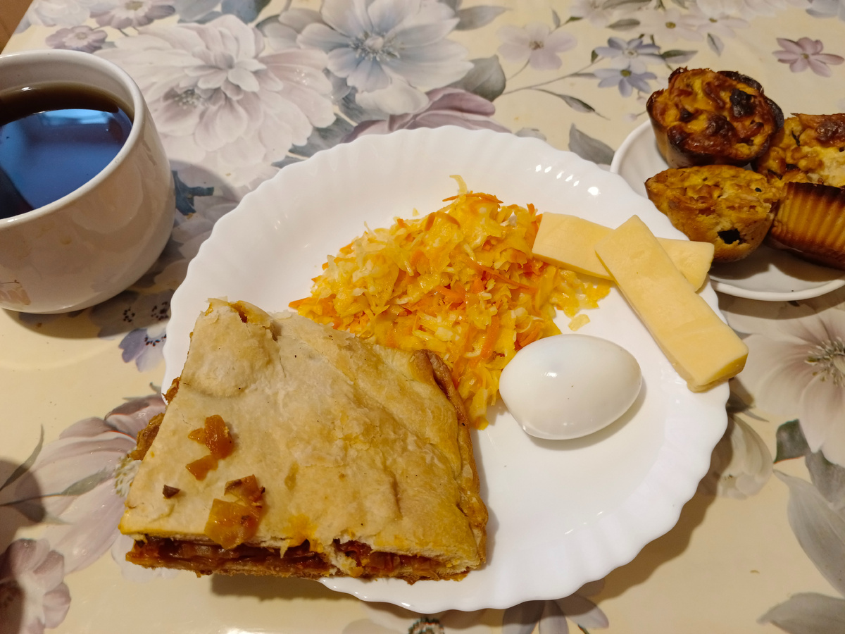 Всем доброго дня. ЗАВТРАК Сахар 10 грамм. Кекс яблоко с протеином 200 грамм. Пирог с капустой и кониной 150 грамм. Яйцо 50 грамм. Сыр пармезан 40 грамм. Капуста 100 грамм. ПЕРЕКУС Ветчина индилайт 60 грамм. Батон 40 грамм. Капуста 100 грамм. Сахар 10 грамм. ОБЕД Лаваш 60 грамм. Овощи 100 грамм. Фарш конина 90 грамм. Сахар 10 грамм. УЖИН Лаваш 60 грамм. Ветчина индилайт 60 грамм. Сахар 10 грамм Батончик 40 грамм. ~~~ В голове столько мыслей, что даже написать нечего. Здоровья вам и вашим близким. Берегите себя.