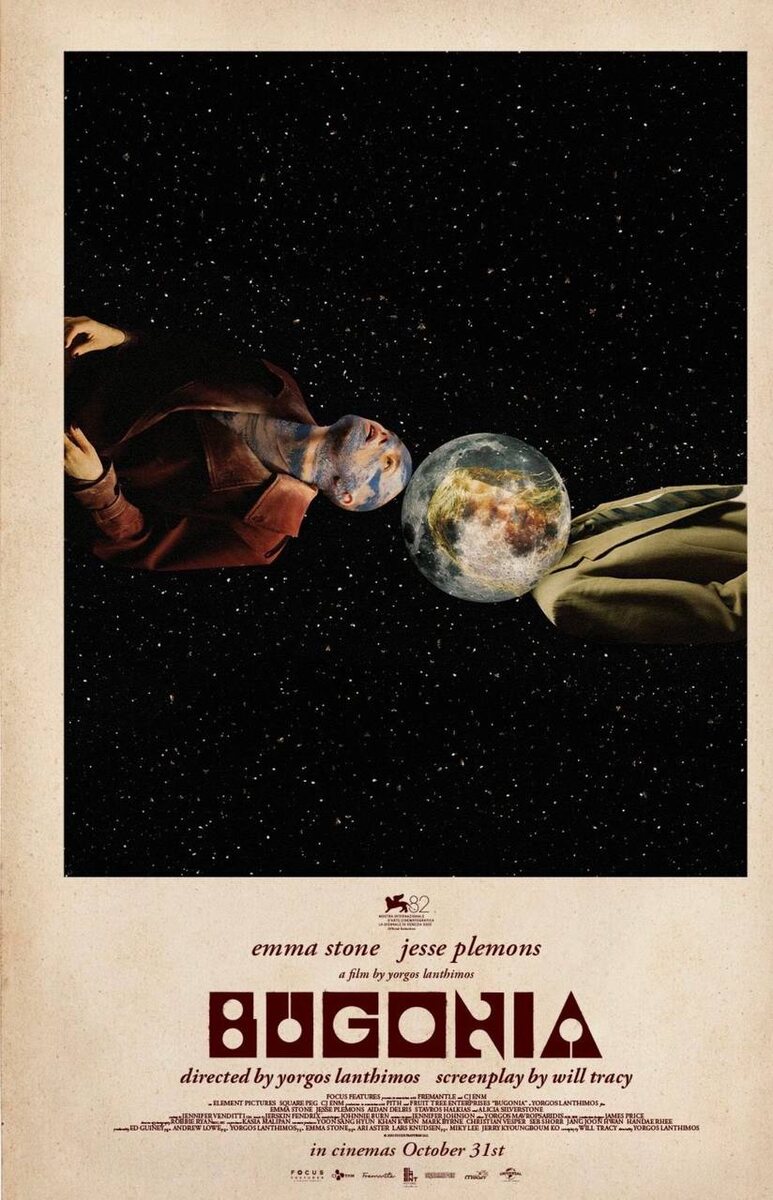 бАгония Добрый вечер, уважаемые читатели! Редко получается посмотреть то, что у всех на слуху, но в этот раз цифровой релиз случился быстро, поэтому, хоть и на излёте тренда, хочу рассказать о фильме «Бугония», который снял прославленный Йоргос Лантимос ⚠️СПОЙЛЕРЫ⚠️ ☀️О чём Завязка сюжета нетривиальна: два приверженца теории заговора [здесь даже не мирового, а галактического масштаба] - Тедди Гатц [Джесси Племонс] и его племянник Дон [дебют в кино для Эйдана Делбинса] - решают выкрасть руководителя крупной фармацевтической компании - Мишель Фуллер [Эмма Стоун]. Тедди считает, что Мишель Фуллер представитель инопланетной расы, которая хочет уничтожить человечество, а Дон просто слепо ему верит, очевидно имея проблемы с головой. Несмотря на то, что компания Мишель производит впечатление очень успешной, никакой охраны у неё нет. Что облегчает Тедди и Дону её захват. Их цель - заставить Фуллер перенести их на инопланетный корабль, чтобы они передали послание императору. 💯Суть «Бу
