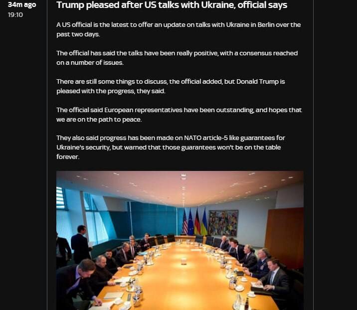 Трамп доволен результатом переговоров делегаций США и Украины в Берлине: 90% вопросов уже урегулировано, — американский чиновник в комментарии Sky News. Заря | Новости - Подписаться