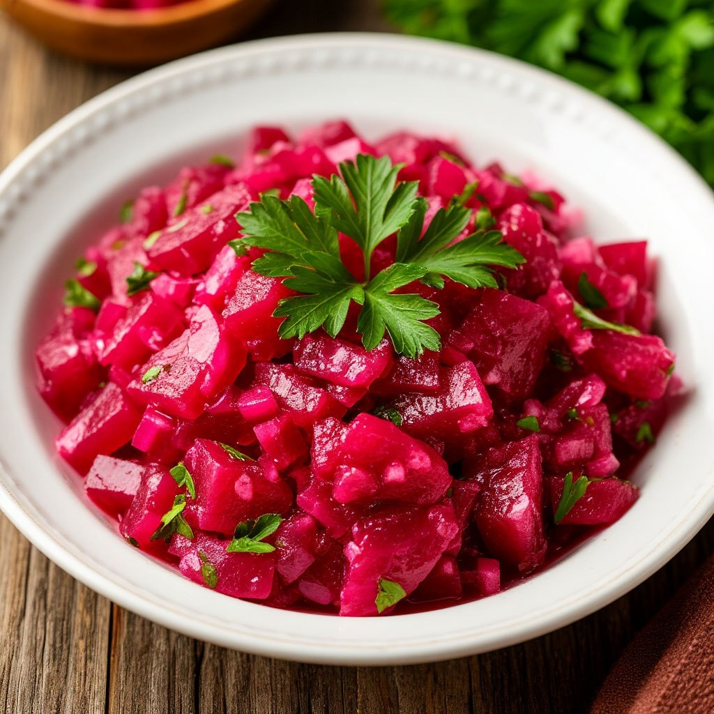Хотите приготовить новый простой салат на праздничный стол? На Новый год например. Мы привыкли к сельди под шубой и готовим это блюдо каждый год. А давайте заменим его на альтернативный вариант. Ингредиенты схожи а вкус изумительный. Росолье относится к холодным Эстонским салатам. Существует версия, что росолье произошёл от русского винегрета, поскольку Эстония долгое время входила в состав Российской империи, а росолье стал упоминаться в письменных источниках как традиционное эстонское блюдо сравнительно недавно, уже после соприкосновения эстонской и русской кухни. Так давайте попробуем это чудо. Селедка — 1 шт. (200 гр. филе); Свекла — 1 шт. большая (200 гр.); Картофель — 4шт. сред. клубня (200 гр.); Морковь - 1 шт. большая (150гр.); Куриные яйца С0 — 3 шт. (С1 4 шт.); Огурцы малосольные — 3 шт. средние (150 гр.); Яблоко кислое зеленое — 1 шт. больш. (200 гр.); Лук репчатый красный — половинка крупного или маленькая целая (50 гр.); Соль, майонез, горчица по вкусу (у меня 1 часть гор