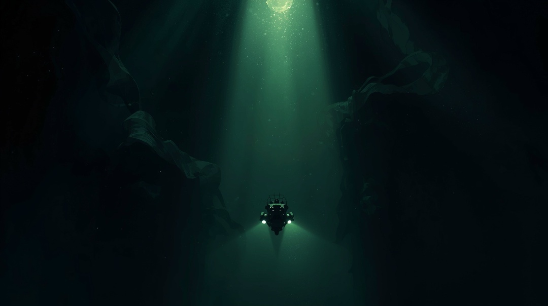 Вода теперь была чёрной, как космос, если не считать лучей прожекторов Tuscany, пробивающих тьму. Густая жидкость казалась не водой, а чернилами, нефтью, или чуждой субстанцией, которая стекала по усиленным иллюминаторам и скользила вдоль корпуса, словно живая. Здесь, внизу, было тесно — вопреки всей безмерности океанического пространства. И всё же я спускался.