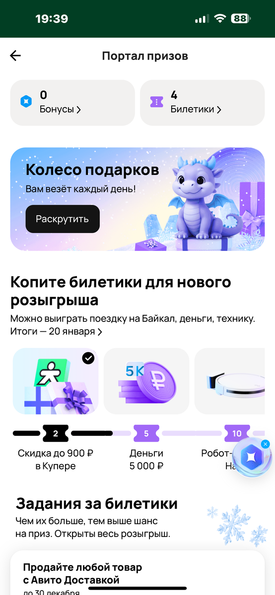 Бесплатный сыр только в мышеловке… Так думают многие и не только я, но ради интереса кручу колесо «подарков» на Авито, собираю билетики ( а вдруг повезет!). Пару раз крутила колесо выпали мне всякие скидки на доставки и всякие такие мелочи. НО! Сегодня 15.12.2025 я решила покрутить колесо подарков и тууут…. Мне выпала PS5! Я не верила своим глазам, ведь стрелка остановилась на ней. Но не тут было. Выплывает оповещение, что мне дали скидку на авито путешествия, никакой тебе приставки игровой 😅Думаю, вот же обманщики))) Просто за 1 минуту весь спектр эмоций получилось испытать спасибо Авито 😂. Скорее всего, данный розыгрыш построен таким образом, что Вам никогда не выпадет дорогостой, лишь скидка на их услуги, что им очень выгодно это, чтобы пользовались их услугами. А Вы что-то выигрывали в розыгрышах? П.с. Можете забрать промокод себе, если кому-то нужен:)
