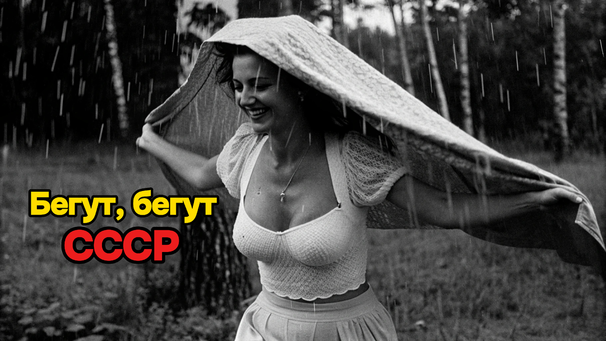 Белая кружевная майка промокла, но кого это волновало? На лице - та самая улыбка без фильтров и причин, когда радость просто есть, потому что ты молодая, живая, и дождь - это не проблема, а приключение. Никаких зонтов, никакой паники из-за мокрых волос. Просто бег через летний ливень с покрывалом вместо крыши.
