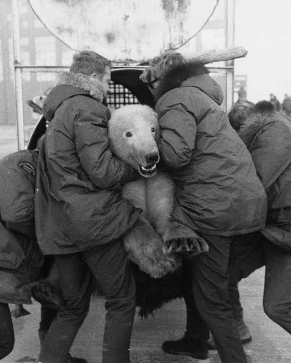В сентябре 1970 года команде канадских инспекторов по охране дикой природы в городе Черчилл на побережье Гудзонова залива в Манитобе пришлось силой тащить молодого полярного медведя в клетку. Ради его же блага. Косолапый подошел слишком близко к жилым кварталам. Его быстро скрутили и вывезли за городскую черту в безопасное место. Фотограф Кент Гавин (Kent Gavin) запечатлел этот момент. Получилось что-то вроде финала «Место встречи изменить нельзя», когда сотрудники МУРа во главе с Жегловым арестовывают бандитов из «Черной кошки».