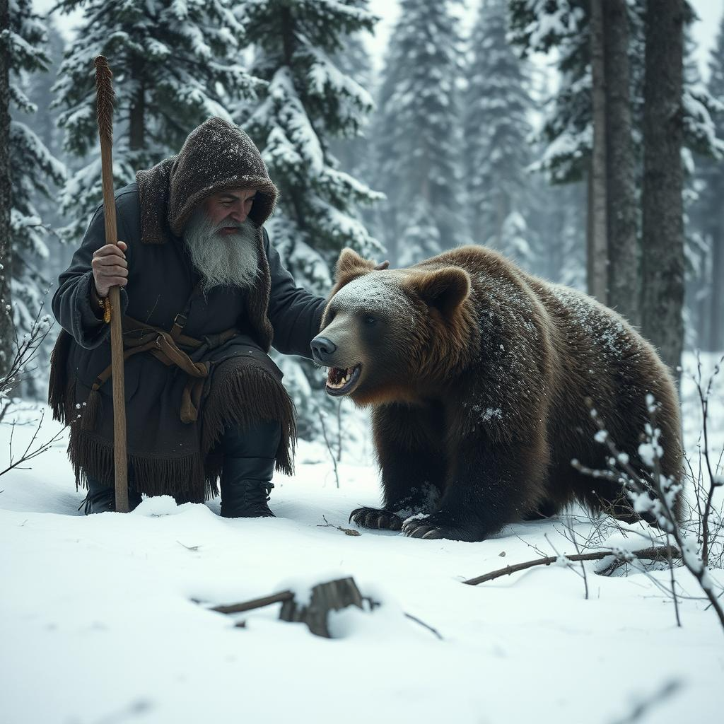 Наконец, настал момент, когда Тагир смог подойти вплотную. Медведь дрожал, но не скалил зубы. Старик промыл раны настоем трав и приложил компрессы из мха и целебной смолы.