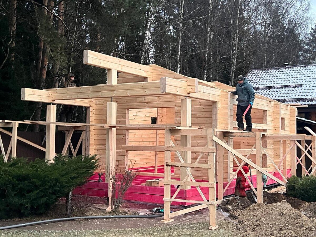 Домокомплект собран меньше, чем за неделю, и баня постепенно обретает свои очертания 😍