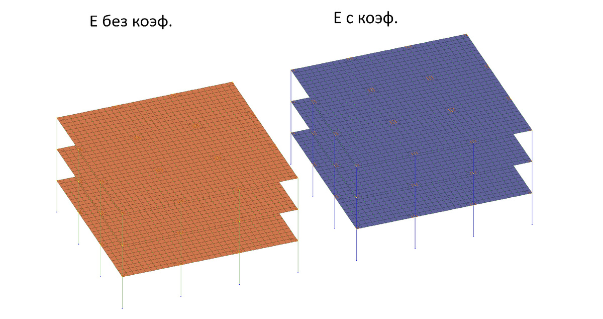 Модуль упругости (Модуль Юнга), Е (МПа) - это физическая величина, которая характеризует способность твердого тела сопротивляться упругой деформации при приложении силы. Упругая деформация - деформация, которая полностью исчезает при снятии нагрузки... ... Простым языком: чем больше значение Е, тем больше нужно приложить нагрузку для деформации тела. Да, мы и имеем табличные значения Е, полученные экспериментальным путем, но в ту же очередь, модуль упругости зависит от: ➖ Компонентов бетона, наличие примесей и добавок; ➖ Фактического класса бетона; ➖ Влажность воздуха, температура; ➖ Время воздействия нагрузок ➖ Армирование Но большинство объектов мы считаем только в линейной постановке (первая стадия/первое приближение), ... ... и мы никак не учитываем факторы влияющие на модуль упругости и никак не пересчитываем (уточняем) его при найденном армировании. Для многих объектов достаточно в качестве результата получить сечения, перемещения, армирование. Поэтому на первой стадии (или в п