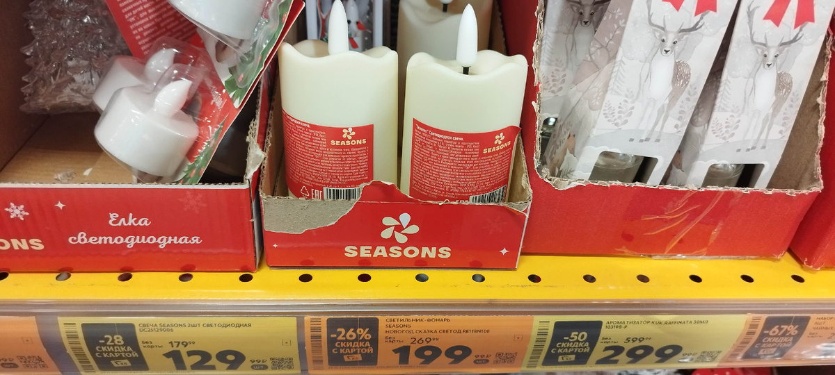 Всем моим читателям огромный привет! Вчера была в магазине Пятерочка и не смогла пройти мимо полочек с новогодним декором. В этот раз магазин очень порадовал ассортиментом, да и цены тоже очень привлекательные т.к. начались акции на многие товары, поэтому кто еще не прикупил себе новогодний декор, то сейчас самое то! На полочках в магазине красивая новогодняя посуда, декоративные статуэтки, декоративные фигурки и многое другое. Давайте поближе рассмотрим что привезли и начну с декоративной свечи на батарейках. Такая свеча прослужит очень долго, меняй только батарейки. Цена 199 рублей Милейший керамичесий лосик. Стоимость 399 рублей. Такую статуэтку можно поставить как отдельный декоративный элемент и также можно использовать вместе с новогодней композицией на новогоднем столе. Яркая новогодняя тарелка с глянцевым покрытием. Цена 199 рублей. Отличный вариант для салатов и закусок. Конечно же кружки с новогодними рисунками по 199 рублей и 279 рублей. Последний вариант чуть дороже так