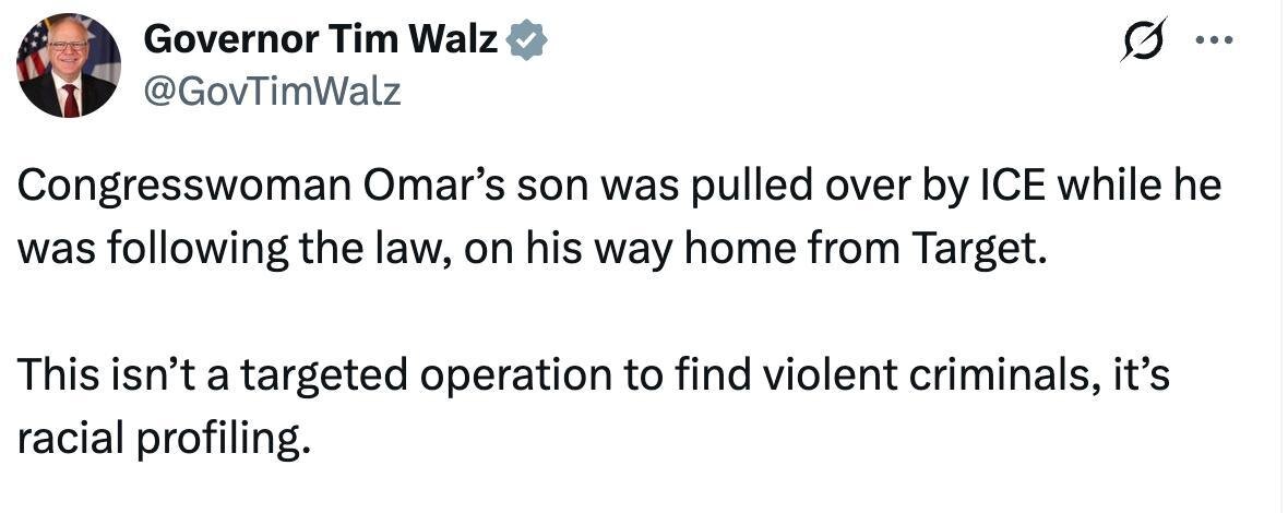 Tim Walz claims ‘racial profiling’ led to Ilhan Omar’s son being pulled over by ICE