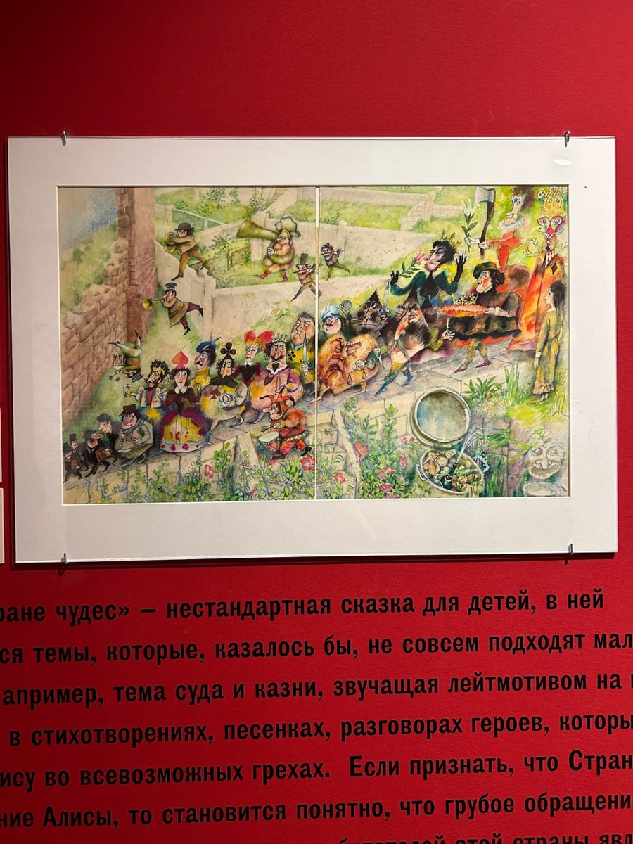 И читала все, что попадалось под руку. И в каком-то младшем школьном возрасте мне совершенно не понравилась «Алиса в стране чудес». И мультик еще этот дурацкий. Почему взялась перечитывать ее в подростковом возрасте, не припомню. Но тогда-то я ее и открыла для себя по-настоящему. Она для меня примерно как «Маленький принц» — вроде, детская, но на самом деле – нет. В Доме Остроухова в Трубниках завтра откроется выставка «Алиса, проснись!». Под нее отдали полностью все пространство музея. Левая часть — «просто Алиса», правая — «Зазеркалье». Выставку посвятили 160-летию первого издания книги, но рассказ ведется о судьбе этой сказки в России. Иллюстрации — то, чем всегда радует Литературный музей. (Не нашла здесь «своих» — а все потому, что из моих трех «Алис» первая издана во Владивостоке, вторая — белорусская, а третья — с иллюстрациями самого Кэррола и еще одного зарубежного художника). Это одна из тех книг, в которой есть, где разгуляться фантазии любого иллюстратора. Поэтому есть