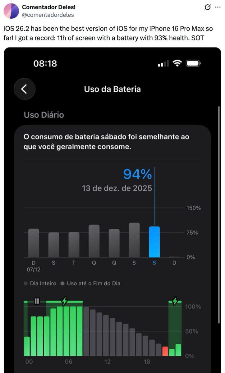 Apple победила: iOS 26.2 больше не убивает батарею айфона пользователи сообщают, что теперь смартфон держит заряд в 1,5-2 раза дольше