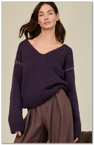 Перевод из журнала "Lana Grossa Lookbook", № 19, 2025 г. Свободно, стильно и модно. Так можно описать этот цельновязанный пуловер с глубоким V-вырезом. Вязание начинается от спинки и переходит на полочки. На рукавах вышивка-стежка контрастной нитью.