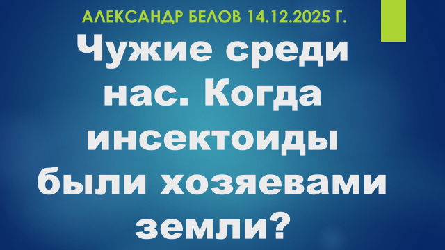 u По всей видимости, тип членистоногих куда более древний, чем тип позвоночных (хордовых). Вероятно, разумные членисторуконогие (инсектоиды) являлись в докембрии (свыше 538 млн. л. н. ) истинными хозяевами земли.