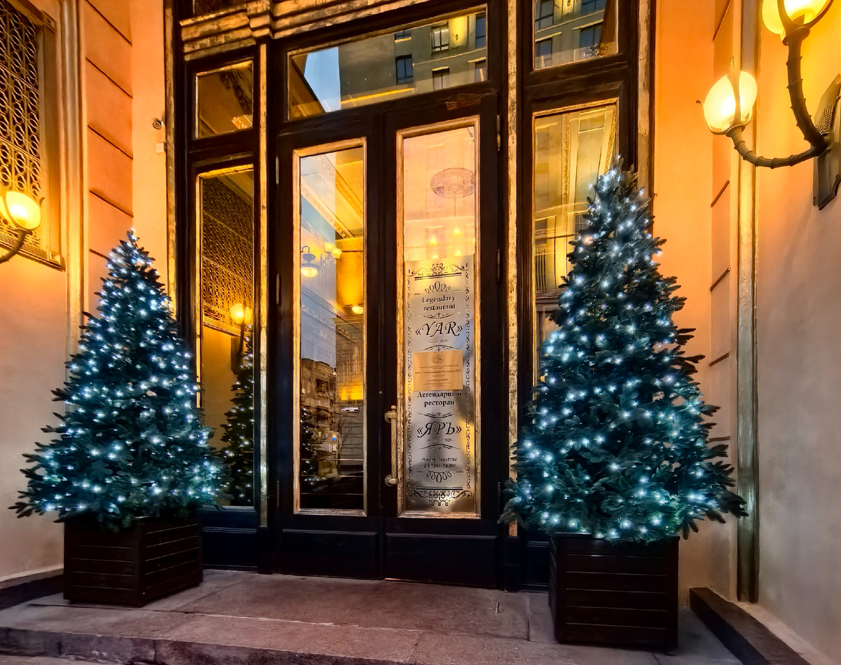 У ресторана несколько залов, но основных два: главный и самый известный - одноимённый зал «Яръ» (Большой зал) и зал «Зеркальный» (Малый зал), который сегодня в том числе выполняет роль дублирующего зала ресторана, когда Большой зал занят под банкеты и мероприятия. А такое бывает частенько и именно в такой ситуации мы и оказались, хотя планировали попасть в Большой зал с воссозданным оригинальным интерьером ХIХ века с витражными окнами и императорской ложей, сделанной на случай посещения ресторана членами царской семьи.