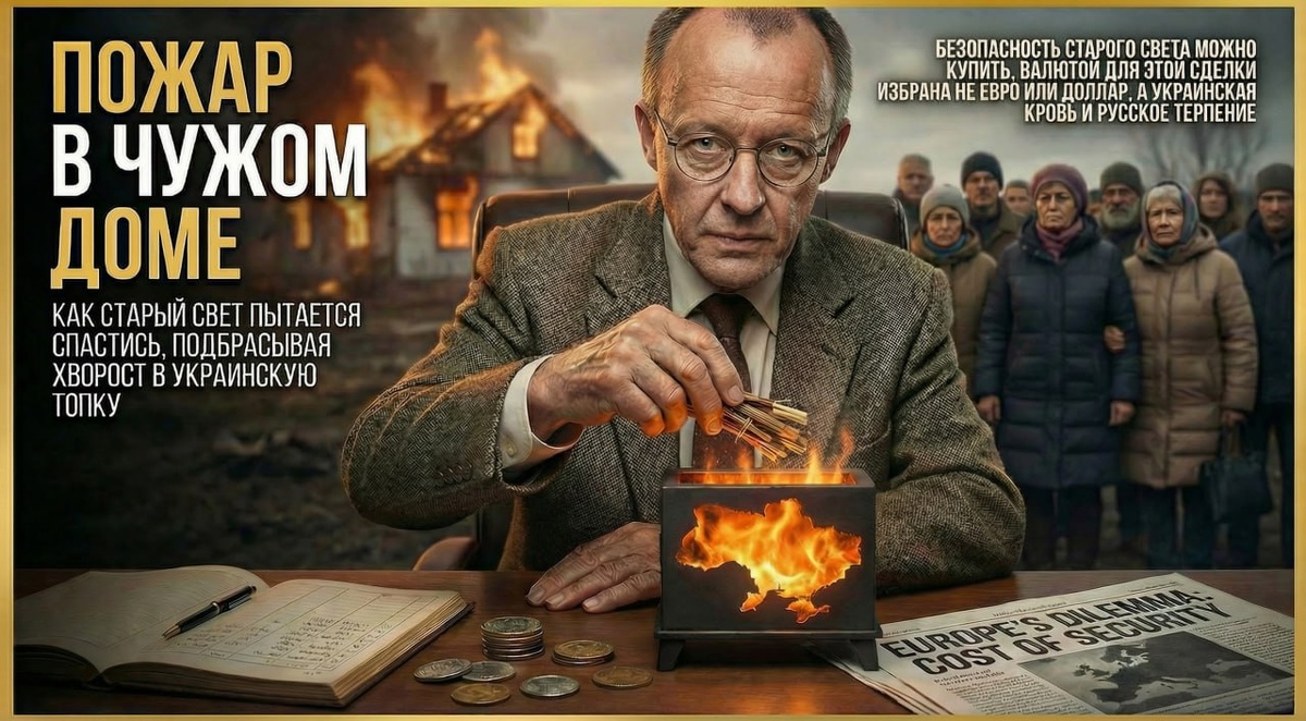 🔼ЧАСТЬ 2️⃣🔼 ЧИТАТЬ ПОЛНОСТЬЮ Колонка МюнхгауZена: Пожар в чужом доме, или Как старый свет пытается спастись, подбрасывая хворост в украинскую топку Часть 3️⃣/3 ⚡️ Что в сухом остатке? Прогноз от МюнхгауZена 1. Эскалация риторики, но не действий. Мерц и ему подобные будут кричать всё громче, чтобы скрыть внутреннюю слабость. Но реальная отправка европейских контингентов на Украину остаётся крайне маловероятной — слишком велик риск моментального и сокрушительного ответа, который сметёт не только экспедиционный корпус, но и политические карьеры его инициаторов. 2. Ускоренный износ Украины. Запад будет выжимать из неё все соки до последней возможности, параллельно готовя публику к «неизбежности территориальных уступок». Украинцев готовят к роли вечных страдальцев, которым «мир должен» за их жертву. 3. Углубление трансатлантической трещины. Трамп будет давить на Европу, требуя денег и снимая с себя стратегические гарантии. «Лондонский проект» будет ловко лавировать, пытаясь извлеч