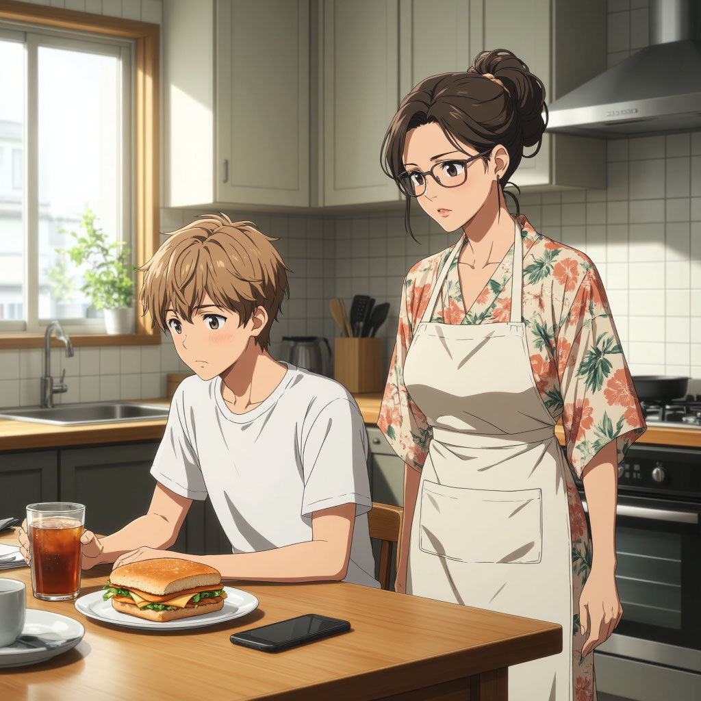 Артём вошёл на кухню, щурясь от непривычно яркого после сумрака комнаты света. В воздухе витал запах подгоревшего тоста и крепкого кофе — мама всегда варила его слишком крепким. Он опустился на стул, скрипнувшим ещё с детства сиденьем. Перед ним уже стояла чашка с чаем — тёмным, как осенняя ночь, и бутерброд с тонким слоем сыра, будто мама знала, что он съест лишь пару укусов. На краю стола лежал смартфон экраном вниз, словно стыдясь показывать бесконечный поток уведомлений. Взгляд Артёма скользнул по холодильнику. Знакомая записка с кричащими буквами *«Не забудь про концерт 15 марта!»* прилипла магнитом в виде мультяшного кота. Рядом — расписание школьных кружков, давно просроченное, но так и не снятое. Артём отвернулся. — Ты хоть позавтракай нормально, — голос мамы раздался от раковины. Она не оборачивалась, но он знал этот тон: мягкий, но твёрдый, как натянутая струна. — Опять голодный пойдёшь? Артём вяло подцепил вилкой кусочек бутерброда, подержал в воздухе и положил обратно.