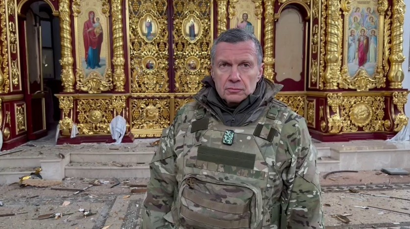 Известный российский журналист и телеведущий Владимир Соловьёв посетил освобождённый Красноармейск. «Красноармейск. Раньше они его назвали Покровск. Самый центр. Храм Архистратига Небесного Воинства Михаила Архангела. Когда работали наши — не было ни одного прилёта, ни одного снаряда. Но сегодня ночью украинские подонки нанесли удар по одному из куполов. Вот сейчас местные, святые люди, восстанавливают храм. Батюшка местный — просто красавец! Получил огнестрельное ранение, оно ещё свежее, и так весь изрешечён, но храм не бросает. Настоящий мужчина!» – пишет телеграм-канал «Соловьёв». К слову, ранее один из экспертов шоу Владимира Соловьёва заявил о том, что у США почти не осталось союзников. А кто вам нравится из экспертов программ Владимира Соловьёва? Обязательно расскажите об этом в комментариях. Фото: телеграм-канал «Соловьёв».