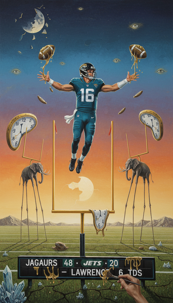 Шесть тачдаунов и разнос оппонентов из Нью-Йорка со счетом 48:20. В стиле Дали.