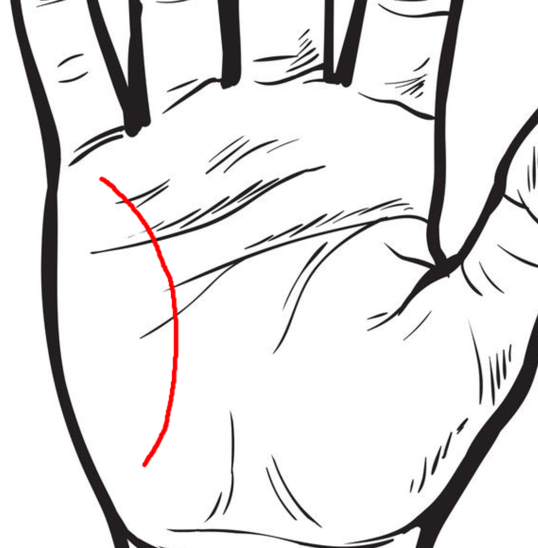 1. Линия Интуиции Где искать: Дугообразная линия, начинающаяся с ребра ладони и дугой идущая к мизинцу. Часто бывает прерывистой или совсем тонкой.