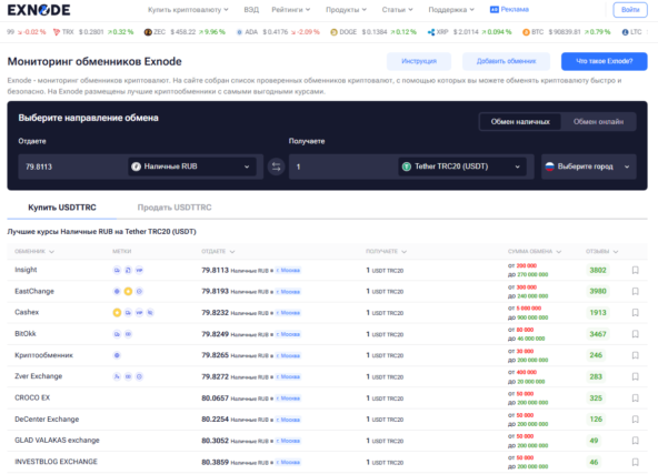Важно помнить, что даже при работе с проверенными обменниками курс и условия могут меняться. Поэтому перед каждой сделкой стоит уделить несколько минут сравнению предложений. В этом помогает сервис мониторинга Exnode, который позволяет быстро увидеть актуальные курсы, комиссии и доступные обменники в вашем городе. Такой подход снижает риски и помогает выбрать действительно выгодный вариант.
