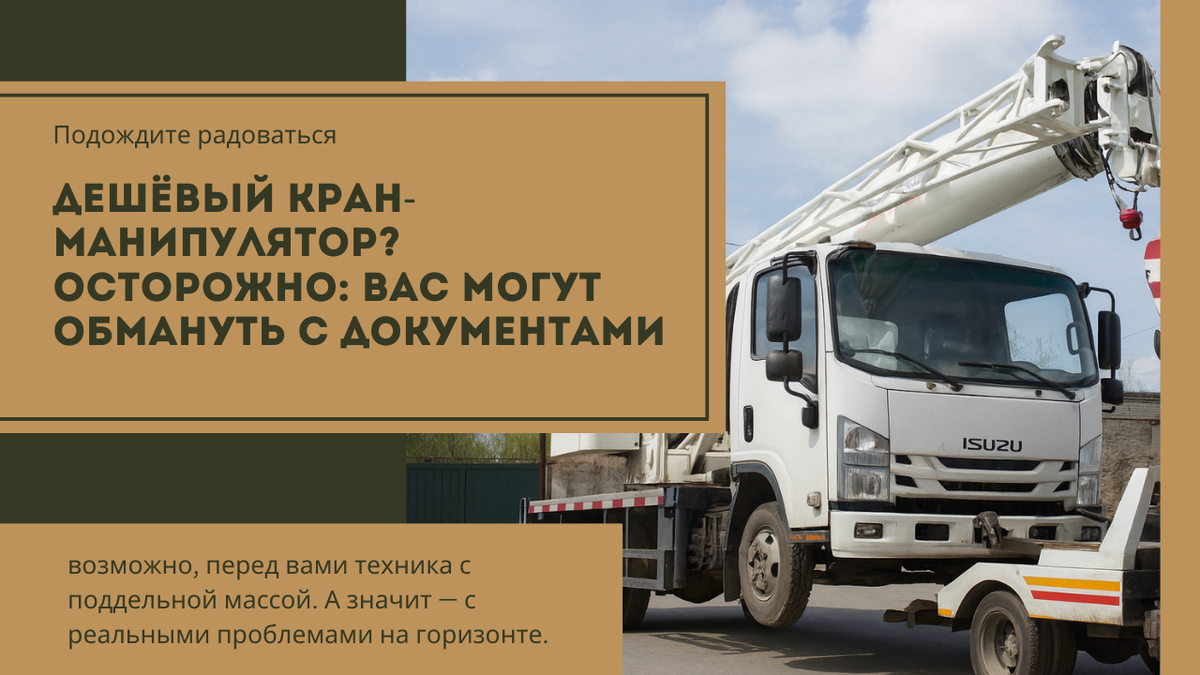 Выбираете кран-манипуляторную установку (КМУ) и нашли вариант по цене ниже рынка? Подождите радоваться — возможно, перед вами техника с поддельной массой. А значит — с реальными проблемами на горизонте. Почему техника дешевле у некоторых продавцов? Всё дело в том, что цены "кусаются" только у честных продавцов. И вот почему: Когда спецтехника ввозится в Россию, её обязаны обложить утилизационным сбором. Размер сбора зависит от полной массы.