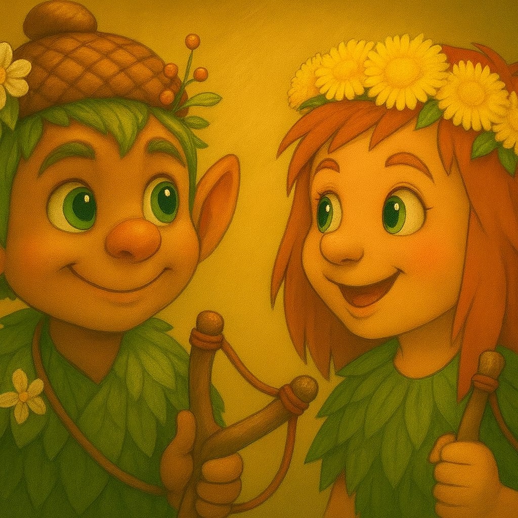 В один солнечный день лешик Ярилка гулял по лесу и встретил свою подружку — девочку-лешего по имени Веснянка. Веснянка была озорная, с веснушками на носу и венком из одуванчиков, но сегодня была не в самом весёлом настроении. Между Лешиком и Веснянкой завязался забавный диалог с поддразниваниями: