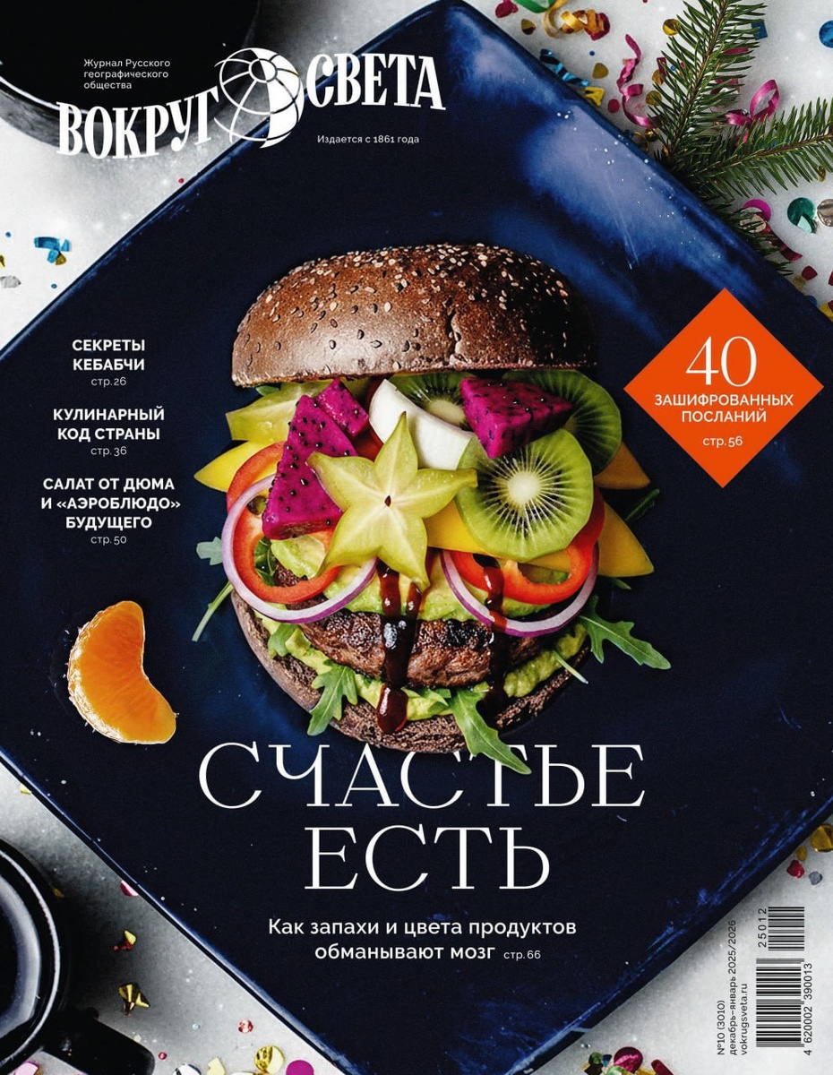 Что может сделать вас счастливее этой зимой? Новый зимний номер журнала «Вокруг света»! В нем затрагивается вдохновляющая тема — «Счастье есть». Внутри вы найдете исследования про то, как вкусы, запахи и цвета способны не только радовать, но и хитро обманывать мозг. Читайте в номере: • Ян Топлес, амбассадор журнала, рассказал, как фермеры и производители продуктов питания научились виртуозно влиять на наши рецепторы; • как Турция не поссорилась с Германией из-за «правильного» рецепта донер-кебаба; • что общего у лебедя и ежевики, почему важен цвет слив и как краб может превратить молитву в фарс; • почему мы воспринимаем вкус не на вдохе, а на выдохе, как различаем молекулярный состав пищи с точностью до атома и зачем мозг нас обманывает. А еще раскрыли тайну дикого огурца и даже обсудили кулинарные эксперименты исторических личностей. ➡️ Как присоединиться к поиску счастья? Купить номер «Вокруг света» в магазинах и онлайн на Wildberries, Ozon и «Яндекс Маркете». 🛫Реклама. О